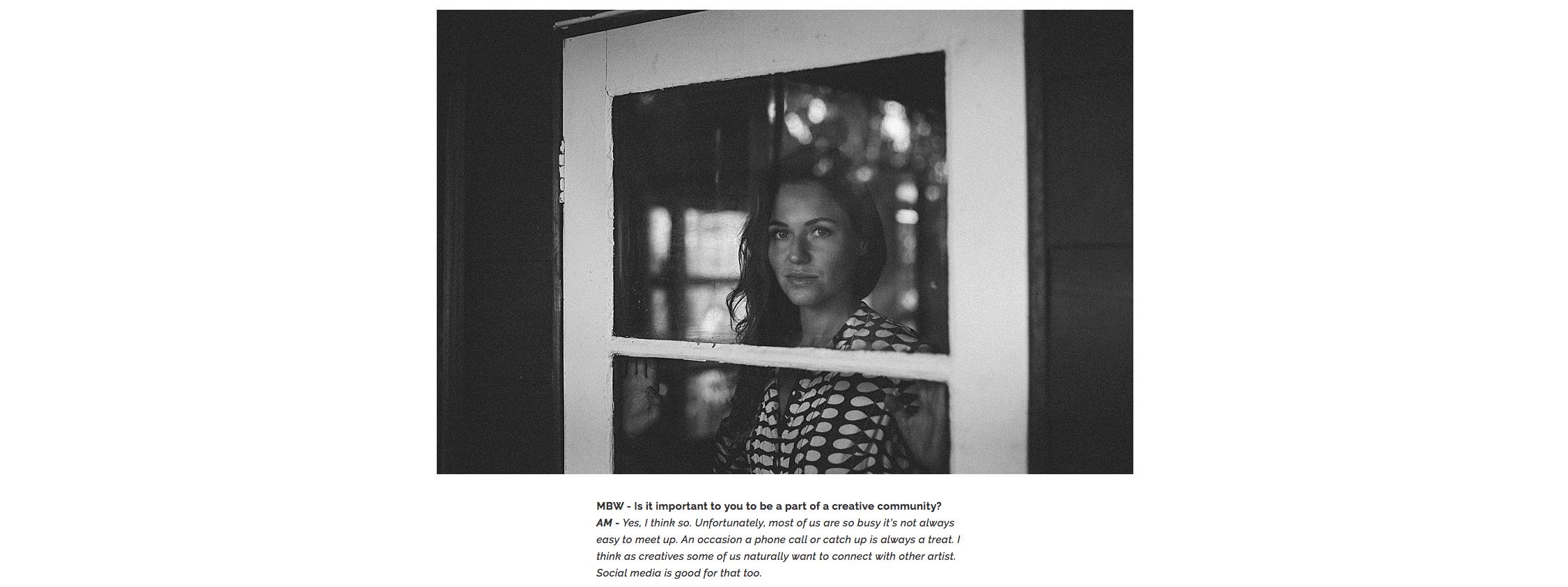 MBW – Is it important to you to be a part of a creative community?